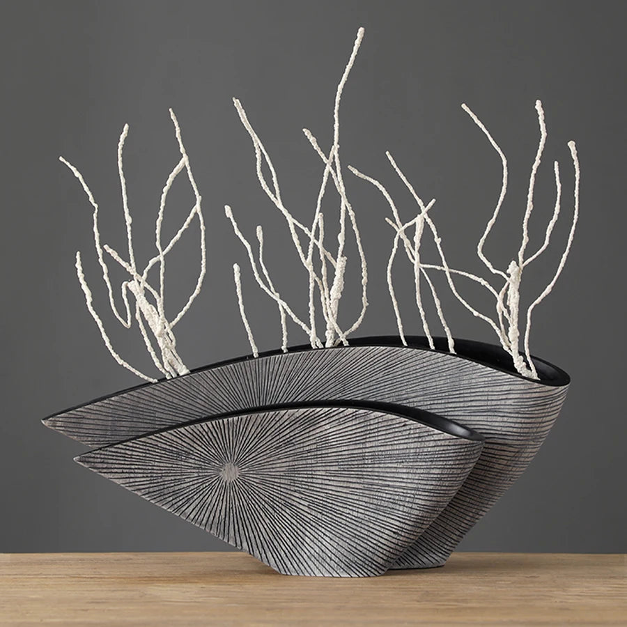 Elevate your interior with this Modern Vase, a sophisticated blend of sculptural form and functional design. Crafted with a contemporary artistic touch, this decorative vase serves as both a standalone art piece and a stylish holder for dried or simulated flowers.